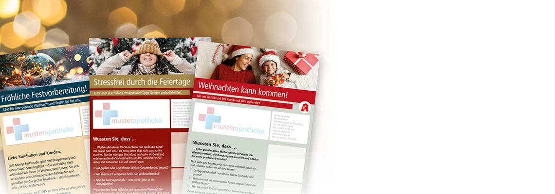 In unserem Online-Portal finden Sie alles, was Sie für gute Apothekenwerbung brauchen. Und das immer zu wirklich fair kalkulierten Preisen.