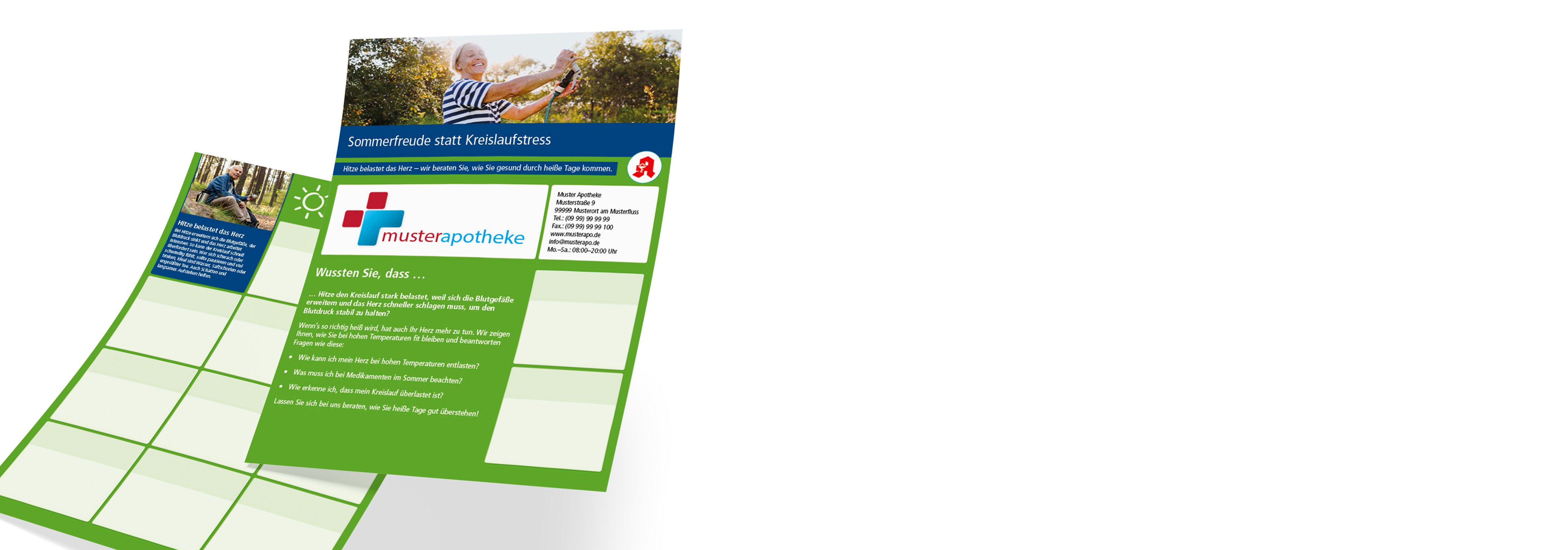Mit unserem neuen Beratungshandzettel informieren Sie Ihre Kund*innen über Herz-Kreislauf-Belastungen bei hohen Temperaturen, geben wertvolle Tipps und positionieren Ihre Apotheke als verlässlichen Gesundheitsberater.