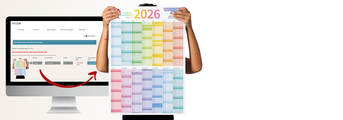 Schenken Sie Ihren Kund*innen Wohlfühlen zum Fest mit Tipps und Produktempfehlungen auf dem neuen recipa Handzettel! Der ist sehr gefühlvoll und gibt Impulse für Zusatzkäufe – und einen gechillten Advent.